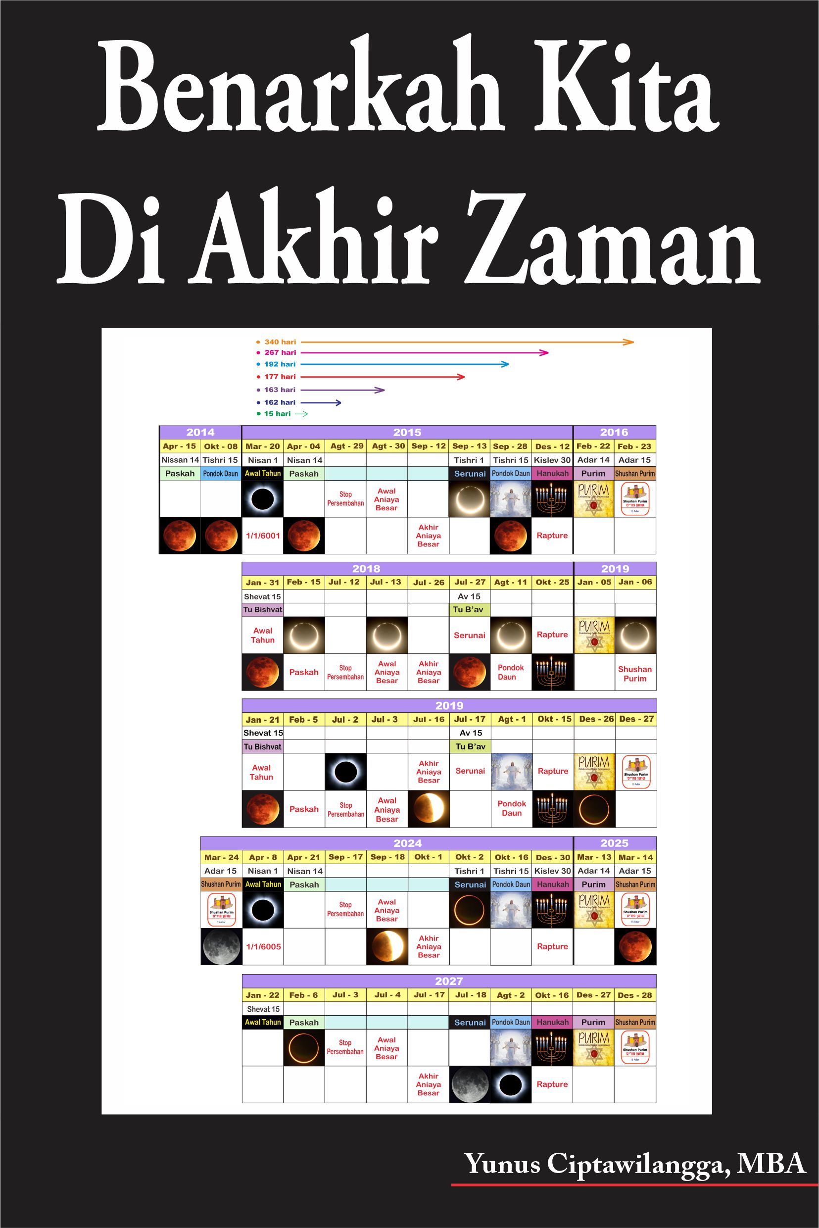 Benarkah kita di akhir zaman? Akhir zaman selalu menjadi topik yang menarik sekaligus menantang untuk dikaji. Dalam perjalanan sejarah, banyak orang berupaya memahami tanda-tanda zaman. Ada begitu banyak ramalan, bahkan klaim nubuat yang dikemukakan. Ada yang sekadar mencari sensasi, ada pula yang secara tulus mendasarkan nya pada firman Tuhan. Melalui buku ini, penulis mengajak para pembaca untuk menjawab pertanyaan yang me ngemuka sejak zaman gereja yang mula-mula itu. Berbagai tanda langit yang luar biasa dikaji di sini, dengan tetap mendasarkannya pada Alkitab, firman yang dari Tuhan. Tujuan penulis adalah agar para pembaca semakin waspada, bukan karena ketakutan, melainkan karena kerinduan un tuk hidup benar dalam pengenalan kita akan Allah dan kesiapan kita untuk menyambut kedatangan Kristus. Kiranya, buku ini dapat menjadi berkat bagi pembaca, menumbuhkan kerendahan hati dalam menyelidiki firman, serta memberi kekuatan untuk tetap setia hingga akhir.